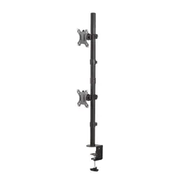 FPMA-D550DV е накланяща се и въртяща се стойка за бюро за два плоски екрани до 32 инча.