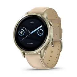 Garmin Venu® 4 | 41мм | Lunar Gold с кожена каишка Light Sand