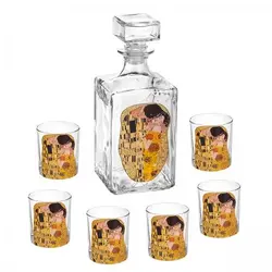 Превърнете ритуала с уиски във незабравимо преживяване. Комплектът "The Kiss" не е просто бутилка и чаши; това е акцент, който съчетава завладяващо изкуство с изключителна функционалност. Създаден за познавачите, които оценяват както качествените напитки, така и изискания дизайн, този комплект ще стане централният елемент във вашия домашен бар, впечатлявайки гости и облагородявайки всяка глътка.
