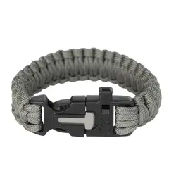 Текстилна гривна с пвц закопчалка, в която има вградена свирка и магнезиева запалка. Дължина: 23 см . Цвят: сив