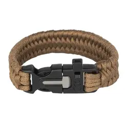 Текстилна гривна с пвц закопчалка, в която има вградена свирка и магнезиева запалка. Дължина: 23 см . Цвят: каки