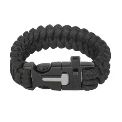 Текстилна гривна с пвц закопчалка, в която има вградена свирка и магнезиева запалка. Дължина: 23 см . Цвят: черен