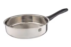 Трислойно дъно, пренасящо топлината равномерно и подходящо за индукционни, газови и обикновени котлони. Ергономична дълга дръжка с меко изолационно покритие.