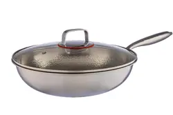 УОК – фюжън и азиатски стил в готвенето! Дизайнът е постигнат с ръчно коване на трислоен материал, едновременно естетичен и функционален. Трислойният материал съчетава предимствата на вътрешната и външната повърхност от неръждаема стомана 18/10, отличната топлопроводност на алуминиевия среден слой. Дръжките на тигана и на стъкления капак са ергономични и отлично топлоизолирани за безопасна работа. Може да използвате на всички видове котлони.