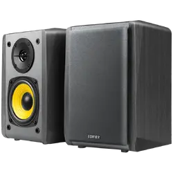 • Мощен и спестяващ пространство дизайн: С обща мощност от 24W RMS, те напълват стаята ви с чист звук без изкривявания. Класическият черен дървесен финиш се вписва елегантно на бюро, рафтове или стойки, допълвайки всеки интериор.