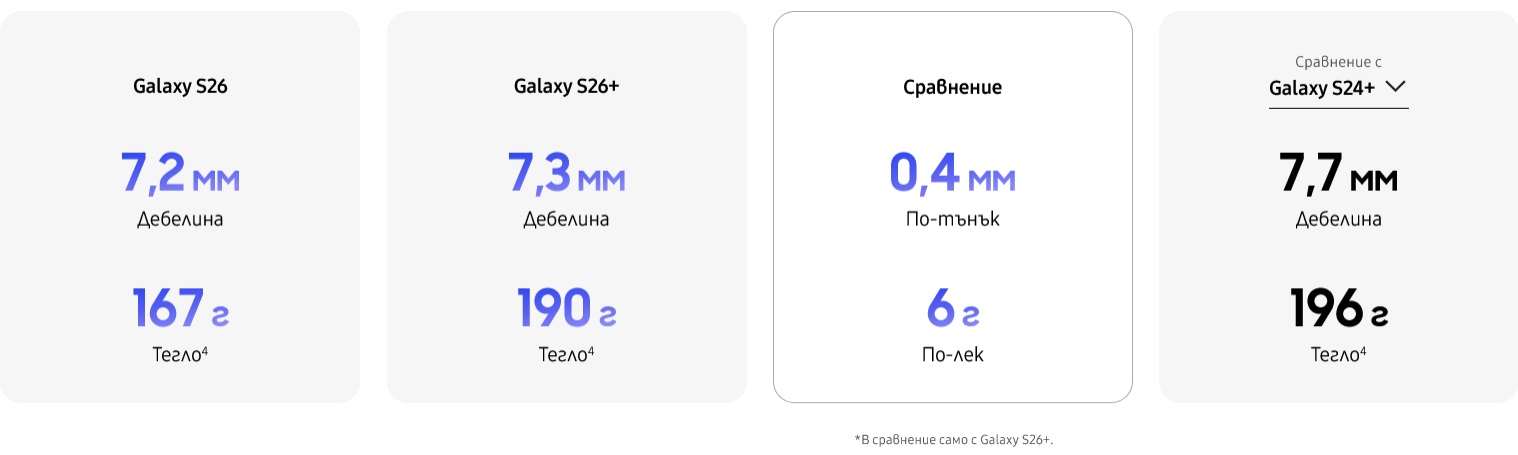 Виж колко тънки и леки са Galaxy S26 | S26+