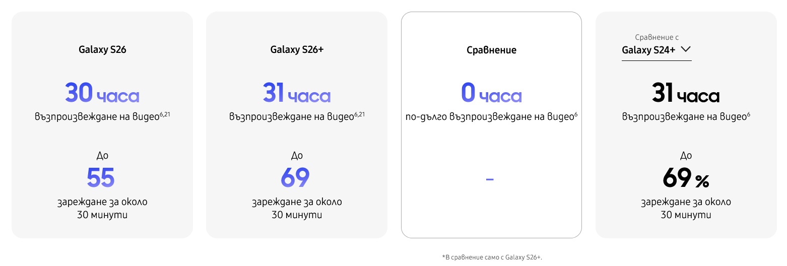 Виж колко дълго издържат батериите на Galaxy S26 | S26+