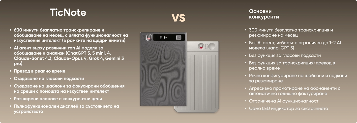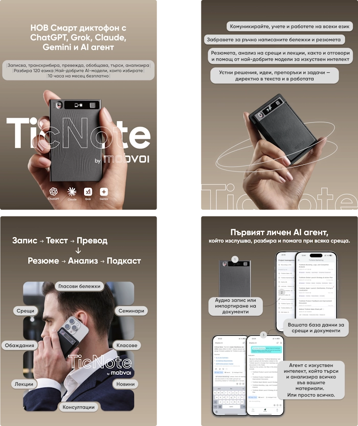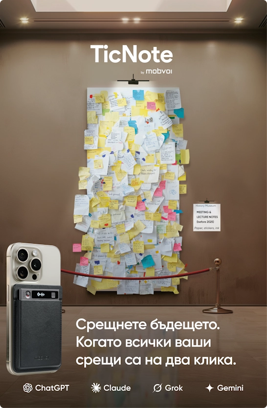• TicNote беше пуснат през 2025 г. от Mobvoi, публична компания с 13 години опит в областта на AI и инвестиции от Google и Volkswagen Group.