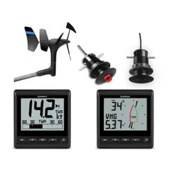 - Включва Garmin GNX™ Wind и GNX 20 морски инструменти, gWind™ Wired сонда, плюс GDT 43 и GST 43 с 43 mm фитинги и адаптери за мрежово споделяне по NMEA 2000®