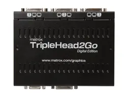 Външен адаптер мулти-дисплей Matrox TripleHead2Go Digital Edition добавя до три монитора на вашия лаптоп или настолен компютър. Той се свързва към видео изхода на вашата система и използва съществуващата GPU на системата за осигуряване на високо качество, некомпресирана картина във всички монитори. Идеален за професионалисти, които изискват повече пространство за максимална производителност и геймъри, които искат да се потопите изцяло.Тази малка черна кутия ви позволява да стартирате различни приложения на всеки дисплей или едно приложение на няколко монитора.