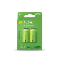 Преминете към екологично и икономично решение с акумулаторната батерия ReCyko (C/LR14). С капацитет 3000mAh, тя осигурява дълготрайна енергия за играчки, фенерчета, радиа и други устройства – презарежда се до 1000 пъти, намалявайки разходите и отпадъците!