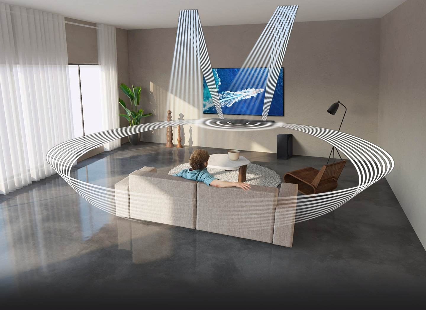Той комбинира и подобрява звука от горните, страничните и насочващите звука нагоре високоговорители на саундбара, както и от тези на телевизора, създавайки ново акустично изживяване, за да се насладиш на съдържанието както никога досега.