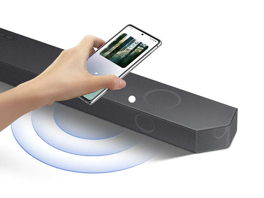 За миговете, когато искаш да се насладиш на музиката на друго ниво. Когато слушаш любимите си парчета на телефона, просто го допри до саундбара. Той разпознава устройството и безпроблемно се свързва и възпроизвежда песента, която слушаш в момента, но с невероятното качество на звука от твоя саундбар