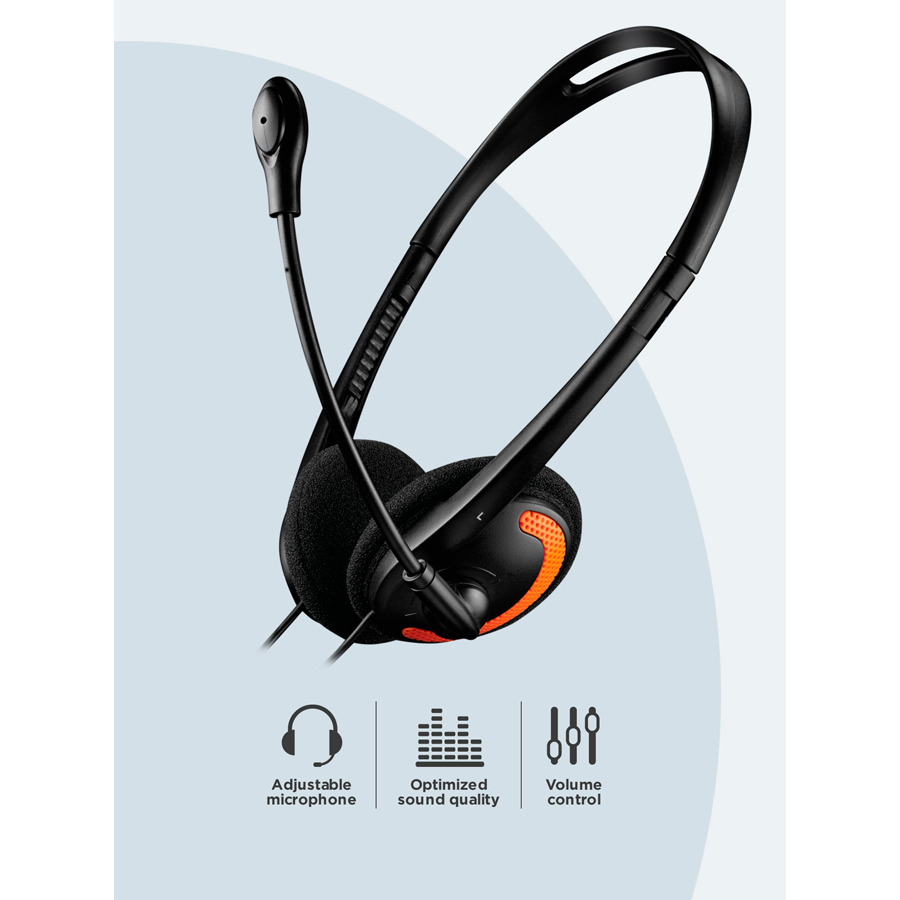 CANYON PC headset with microphone, volume control and adjustable headband, cable 1.8M, Black/Orange