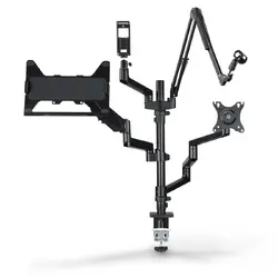 Индивидуално използваем статив за стрийминг с 4 регулируеми на височина рамена и включени различни аксесоари - идеален за стрийминг настройка, като студио за стрийминг на живо и за игри, за влогъри и стрийминг сесии в Twitch, YouTube и др., като ергономична работна станция в офиса или домашен офис и др.