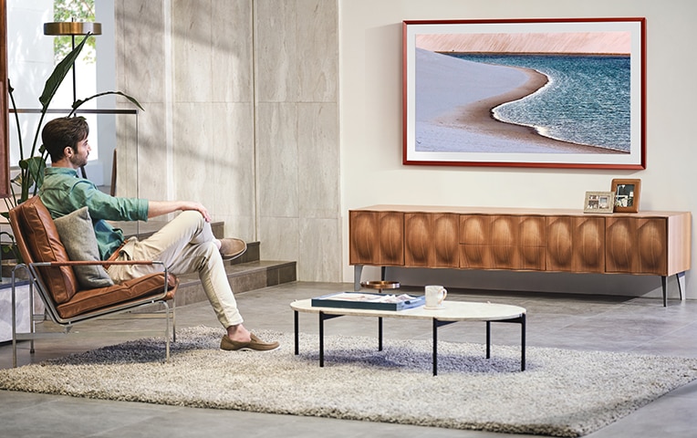 Вдъхновеният от минимализма дизайн на The Frame се съчетава безупречно с интериора на дома ти.