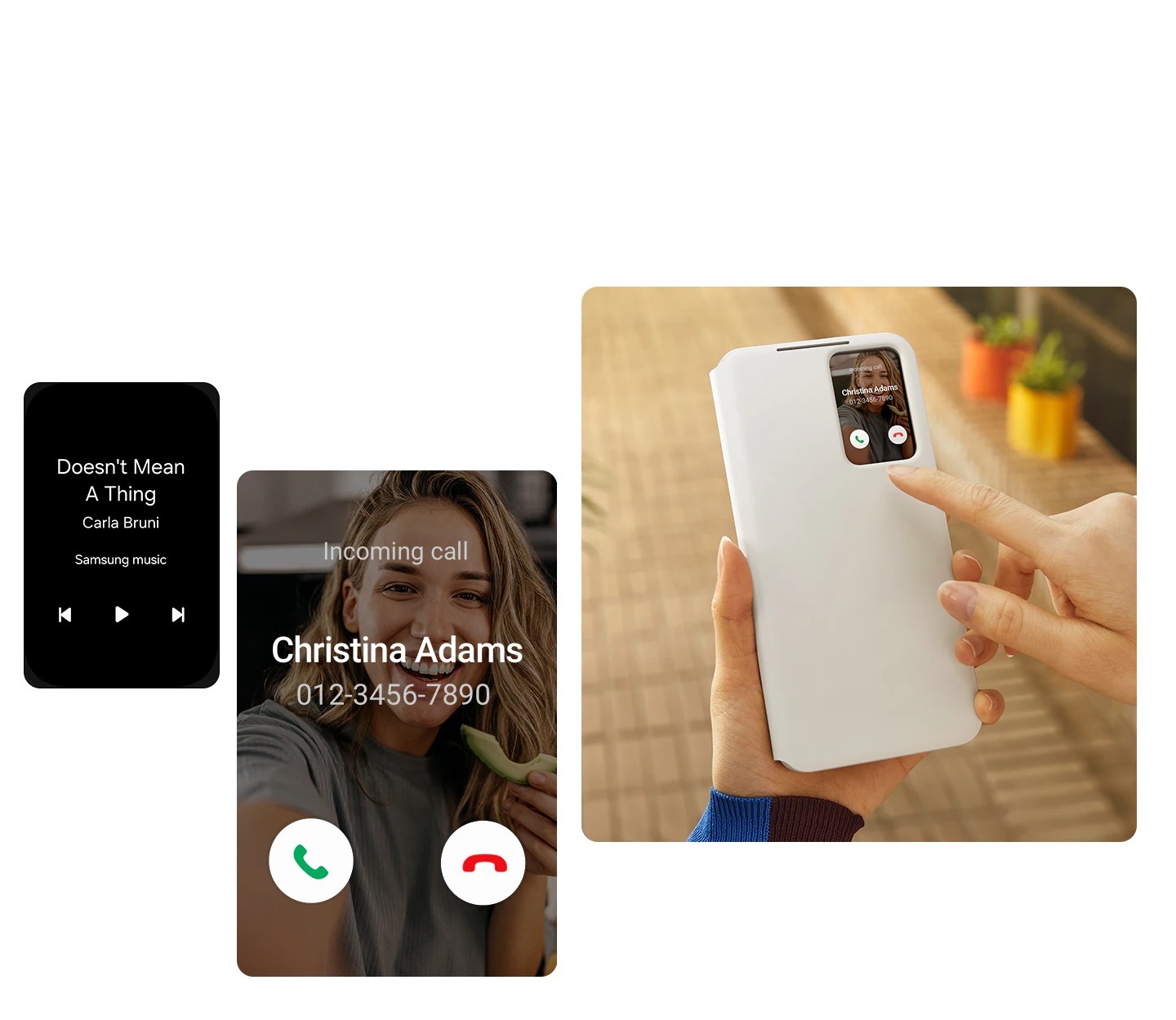Преглеждай съобщения и известия за входящи повиквания директно от прозореца на калъфа, без да се налага да отваряш капака. Докато си на среща или на работа, хвърляй по някой бърз поглед за важни известия на малкия дисплей.