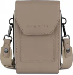 Стилна дамска чанта за носене през рамо - чанта за мобилен телефон с минималистичен дизайн от колекция Almata на световноизвестната марка Bugatti. Освен вашия смартфон, в тази чанта можете да съхранявате други неща, които ще ви трябват в движение – кредитни карти, ключове за дома, документи или пари в брой. Чантата за рамо от полиуретан има подвижна и регулируема по дължина презрамка, която лесно се адаптира към височината на вашата фигура, просто съхранявайте телефона и няколко кредитни карти и можете да отидете където пожелаете!