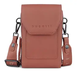 Стилна дамска чанта за носене през рамо - чанта за мобилен телефон с минималистичен дизайн от колекция Almata на световноизвестната марка Bugatti. Освен вашия смартфон, в тази чанта можете да съхранявате други неща, които ще ви трябват в движение – кредитни карти, ключове за дома, документи или пари в брой. Чантата за рамо от полиуретан има подвижна и регулируема по дължина презрамка, която лесно се адаптира към височината на вашата фигура, просто съхранявайте телефона и няколко кредитни карти и можете да отидете където пожелаете!