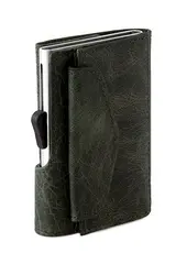 Картодържател C-SECURE с портфейл и монетник в зелено – Компактен и сигурен
