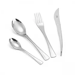 Материал: стомана 18/10 ,дебелина 2,50 мм. Комплектът съдържа 6 лъжици/супа/ , 6 вилици,6 ножа и 6 десертни лъжици