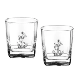 Сетът се състои от 2 бр. чаши за уиски от кристално стъкло с квадратен дизайн. Стилна декорация от сплав от калай и сребро във формата на котва. Произведени в Португалия от „Freitas & Dores“. Комплектът се предлага в луксозна синя дървена кутия, облицована отвътре със сатен.