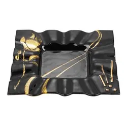 Предлагаме на вашето внимание уникална фруктиера, изработена от муранско стъкло. Тъмночерният цвят на артикула, в съчетание от изрисувана златиста роза, носи усещане за лукс и красота. Серията Gold Rose ще допринесе за изискания вид на масата по време на семейни поводи. Препоръчва се ръчно почистване, за да се запази красотата и цялостната украса на фруктиерата. Цената включва кутия с размери – 34/34/3,5 см. Размери на фруктиерата: 30/30 см.