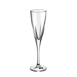 Чаши: Ø 6,8 см. Височина: 23,5 см. Вместимост: 170 мл. Стилен сервиз от 6 чаши за шампанско, произведени от италианската фирма RCR Crystal. Чашите създават усещане за наслада от вкуса на шампанското, с изящен дизайн и нестандартна форма. Подходящи за почистване в съдомиялна машина. Подарете си финес и красота на масата с италианско качество.