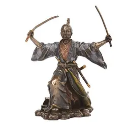 Самураите са древни японски войни – защитници на Япония.Силата им била изключителна, както и смелостта им. Идеализираният образ на самурай включва в себе си готовността да умре по всяко време в полза, защита, или по желание на господаря си. Да не изпитва страх, както и да презира материалните блага. Самураите живеели според свой неписан закон. Важна част от закона е сепукуто – самоубийствен ритуал, който позволявал на посрамен самурай отново да спечели честта си, като премине в отвъдното. Белег на самурайското съсловие били двата меча, опасани около кръста на самурая, както и характерната прическа. Статуетката е изработена прецизно от полирезин с покритие от метал и с внимание към всеки детайл Размери на статуетката: h 22 см