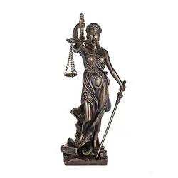 Темида е богиня на правосъдието, въплъщение на божествения ред, закон и справедливост в древногръцката митология. Темида е позната като организатор на общите дейности на хората, в частност събранията. Способността ѝ да вижда бъдещето я прави оракул в Делфи, което после я превръща в богиня на правосъдието. Богинята е символ на безпристрастието, изобразявана със завързани очи, меч и везни в ръка. Статуетката е изработена прецизно от полирезин с покритие от метал и с внимание към всеки детайл Размери на статуетката: h 19 см