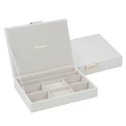 Пазете скъпоценните си бижута в безопасност, подредени и красиво изложени с Бялата кутия за бижута ROSSI. Дизайнерска и функционална, тази кутия е задължителна за всеки, който цени своите аксесоари.