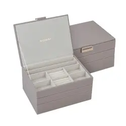 Подредете и защитете ценните си бижута със сивата кутия за бижута ROSSI. Съчетаваща стил и функционалност, тази кутия гарантира, че любимите ви аксесоари са винаги под ръка, без да загубват блясъка си.
