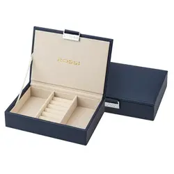 Направи своята колекция от бижута организирана и защитена с елегантната тъмно синя кутия за бижута ROSSI. Съчетание на стил и функционалност, тази кутия е идеална за всеки любител на бижута.
