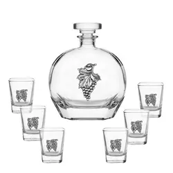 Сет за аперитив/ракия/, състоящ се от 6 бр. чаши и бутилка от стъкло с ефектна декорация грозд, изработена от сплав от сребро и калай върху тях . Бутилката е със стъклена масивна запушалка. Вместимост на бутилката 700 мл, h=21 см. Вместимост на чашите 50 мл, h=6 см. Комплектът се предлага в подаръчна кутия, облицована отвътре със сатен. Произведен в Португалия от „Freitas & Dores“.