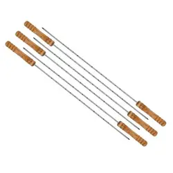 Шишовете са 6 броя, изработени от здрав стоманен материал с красива дървена дръжка за по-лесен захват. Бихте могли да си подарите един приятен престой навън сред природата – да изпиете чаша вино с любимите хора и да се насладите на прекрасен обяд и релакс с добре изпечен обяд. Размери: 420/3,5/3,5 мм