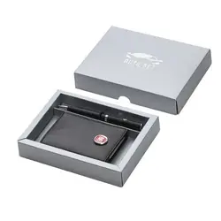 Авто сет, включващ химикал и картодържател / калъф за документи от естествена кожа с лого. Размер на картодържател / калъф за документи: 8*10 см