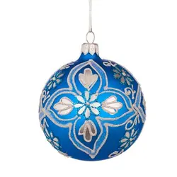 Очарователна синя стъклена топка със сребърни цветя