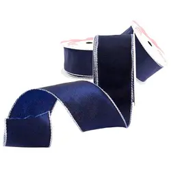 Лента синьо сребрист кант 38мм.