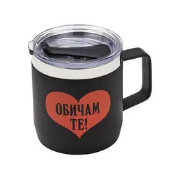 Термо чаша "ОБИЧАМ ТЕ" - Черна