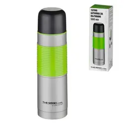 Метален термос с вместимост 500 мл., за продължително съхранение на топли и студени напитки. Капачката може да се използва и за чашка. Зелената силиконова релефна част на термоса го прави лесен за захващане. Устойчива пластмаса, безопасна , Eco-Friendly, BPA Free