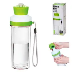 Бутилката има вътрешен стъклен контейнер и пластмасова външна част за съхранение на топли и студени напитки. Без остатъчни вкусове. Уникален дизайн с двойни стени за по-добра изполация. Има възможност за закачване , лесно се разглобява и почиства. Обем 400мл./ 8,5х8,5х24,2/