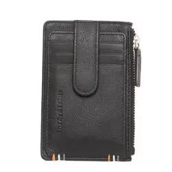 Мъжки портфейл от естествена кожа. Портфейла съдържа отделения за карти и лични документи и външен монетник с цип. Размери: 8 х 10 см.