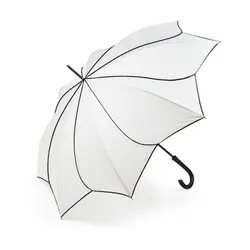 Елегантен чадър в нежно бяло с форма, наподобяваща цвете. Чадърът е с автоматично отваряне и затваряне, удобна дълга дръжка. Височина: 86 см. Диаметър: 110 см.