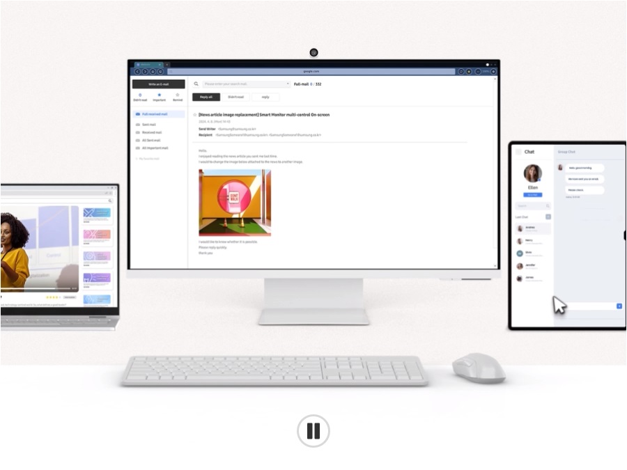 Прави още повече неща едновременно, като управляваш лесно няколко устройства с една мишка и клавиатура. Контролирай с тях едновременно твоя смарт монитор, Galaxy Tab и мобилно устройство Galaxy.