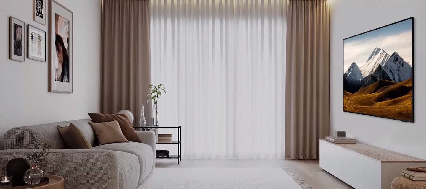 Впечатляващо тънкият корпус на телевизора се вписва хармонично във всеки интериор.