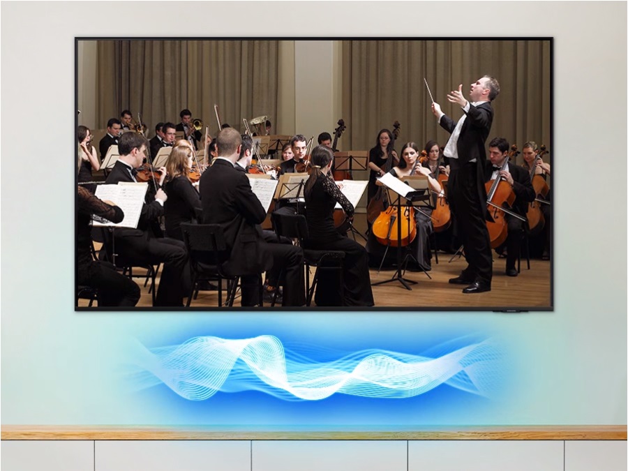 Технологията Q-Symphony позволява на високоговорителите на телевизора и саундбара да работят едновременно и в синхрон, за да ти предоставят по-качествен съраунд звук, който те обгръща отвсякъде.