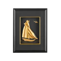 Луксозна репродукция на живописно пресъздадена плаваща платноходка и чайки. Изработена от 24 карата златно покритие под формата на тънък фин пресован златен лист. Артистична визия . Предлага се в красива подаръчна кутия. Произведена от Orchids Gold. Размери: 24,5/31,5 см.