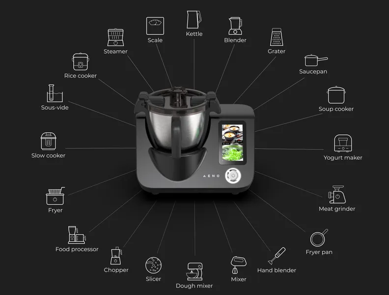 AENO GastroLab е нещо повече от кухненски робот - това е цялата ви кухня в една елегантна машина. Представете си, че замествате кухненския си робот, блендера, со-вид, бавната готварска печка, миксера и дори електрическата кана с едно мощно устройство. Вече не е необходимо да купувате, съхранявате или поддържате над 20 различни уреда. Това ви спестява както пари, така и ценно място на плота. За малките кухни това е промяна в играта. Вместо претрупани плотове или претрупани шкафове, GastroLab предлага рационално, минималистично решение, без да прави компромис с производителността. Освен това тя опростява приготвянето на храната, като съсредоточава всичко необходимо на едно място да имате повече време да се наслаждавате на важните неща