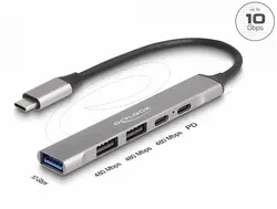 Delock Хъб USB-C, 4 порта, 1 x USB-A 10 Gbps, 2 x USB-A, 1 x USB-C, USB-C PD 95 W