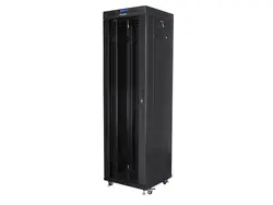 Комуникационен шкаф Lanberg 19" самостоятелен 42U/600x600 (flat pack) със стъклена врата LCD черен v2 – FF01-6642-12BL